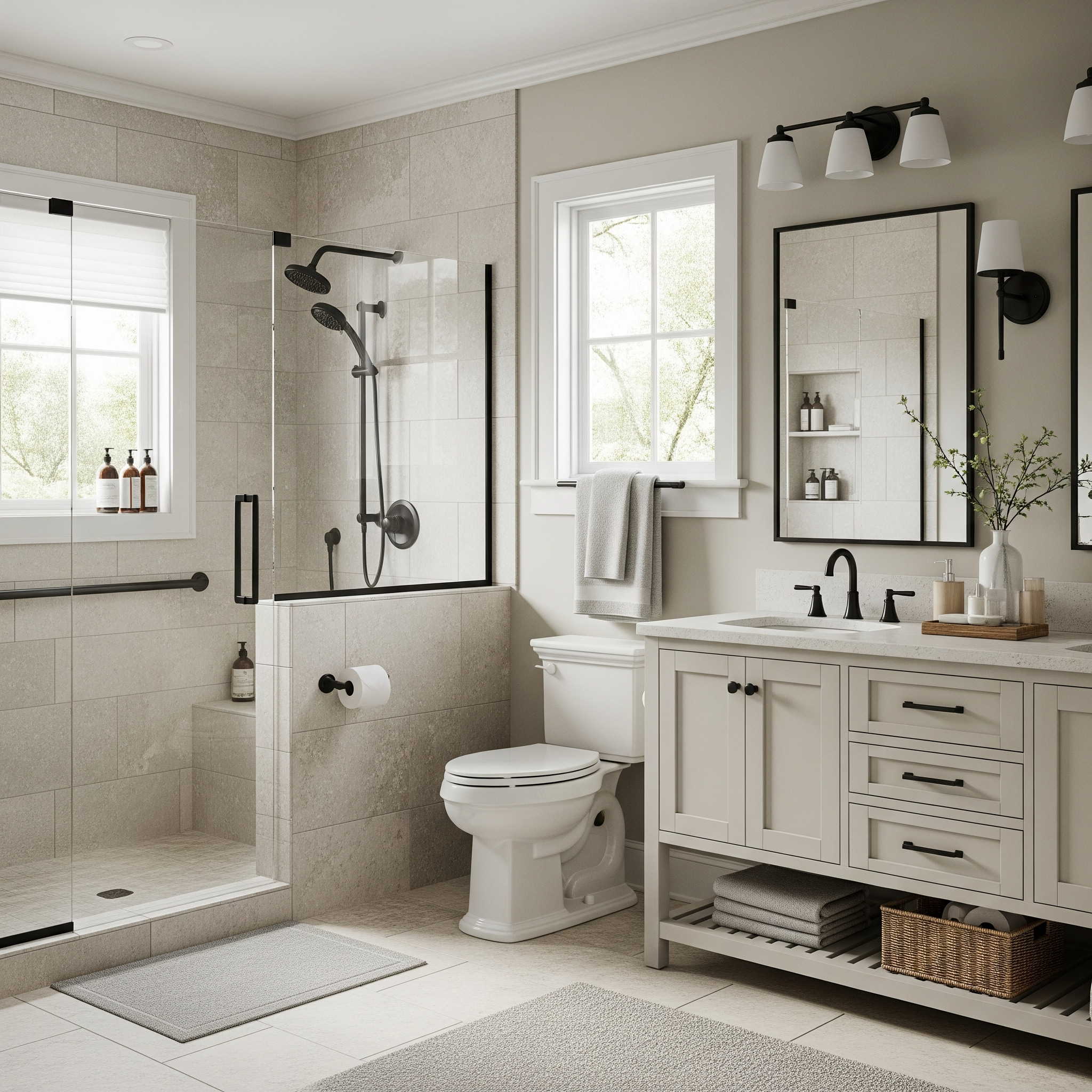 Universal design enhances bathroom usability for all abilities without sacrificing aesthetics. Features include comfort-height toilets, curbless showers with seating, and lever-style hardware.